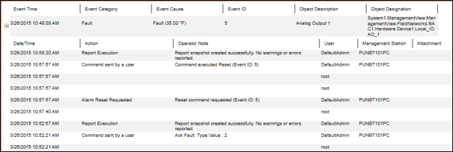 • Information related to the event treatment such as Time, Action, User Name, Management Station, Attachment,