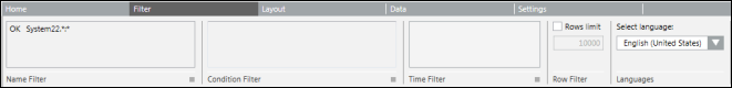 Name Filter | Displays the filter that is currently selected in the Name Filter list. You can type a name into this field. The valid format for entering a Name filter is SystemName.ViewName:Hierarchy.*, where.* is for displaying the child nodes of the selected object. For example, System1.Application View.Site.Building.Floor1.* |