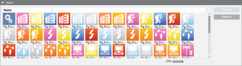 Icons is the library block that collects the icon images used in a system library. The supported file formats are BMP, JPG, PNG, and XAML.