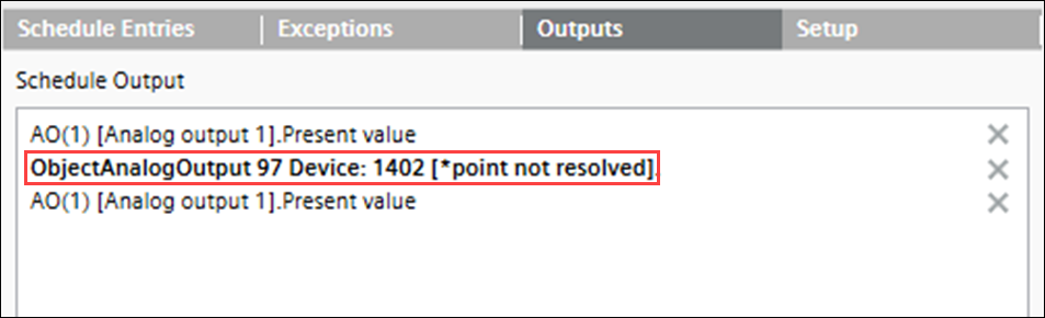 For example, you are working on system 1 at Pharma site (for example Schedule 1 and Schedule 2). You have used one Output from system 2 (that is validated and used in Schedule 1 of system 1). You add Output of system 2 to Output tab of system 1 and after execution you receive an error "point not resolved". Perform the following: