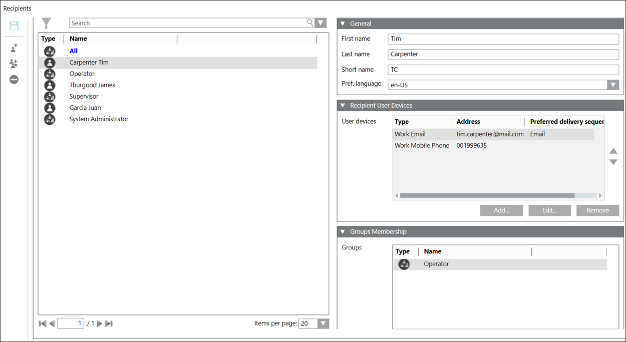 Scenario: You want to check the recipient entries under the Recipients Editor tab in the Notification application.