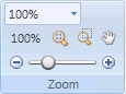 | Zoom Indicator | Display the current scale factor of the active canvas and allows you to either select a pre-defined magnification from the drop-down menu or type a magnification value. |