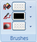 The Brushes group allows you to select a color from the drop-down menu for the fill, stroke, and background colors of the currently selected element on the canvas.