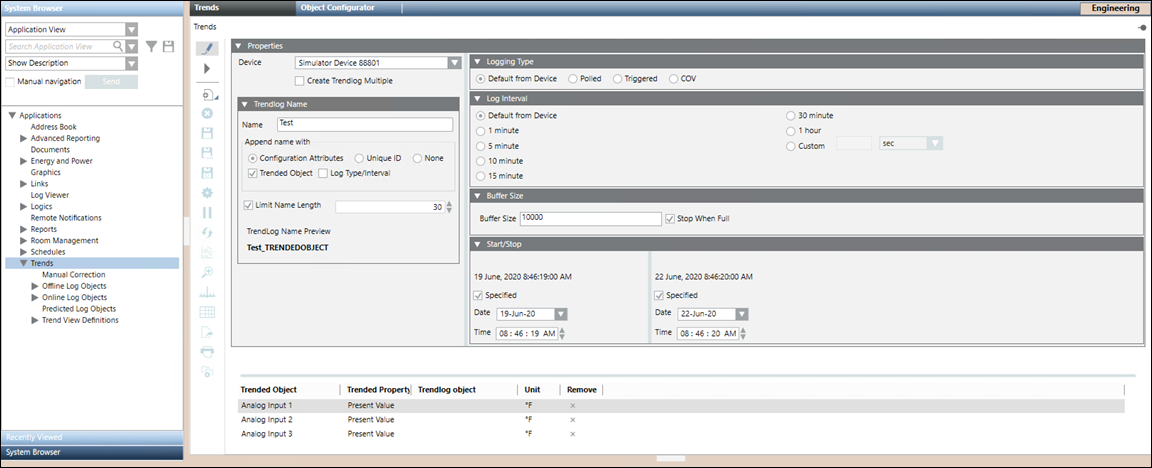 NOTE: If you select Trended Object checkbox, then the name of the Trended Object is appended after the name of the trend log object.