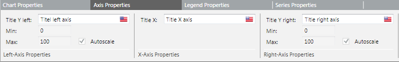 Each chart can display a left and right Y-axis independent of each other. Series can be selectively assigned and scaled to either axis, by default or manually. Scaling is set to automatic by default.