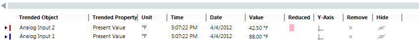 - Online Trend Objects: Lists all available online Trendlog objects. An online Trendlog object is created when you define a series and save it in a Trend View definition.