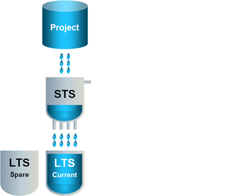 1 | Data flows to the STS and either stays there or flows to the current LTS slice. An empty spare LTS slice is ready if the current LTS slice fills up. |