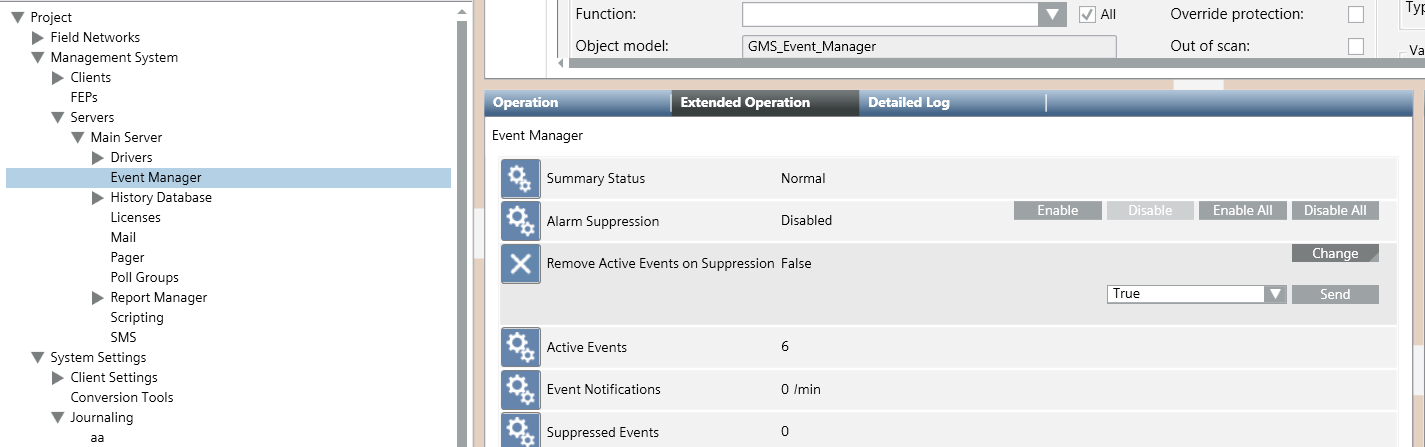 - Next to the Remove Active Events on Suppression property, do the following: