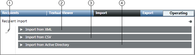 4 | Import from Active Directory | Allows the user to import a department consisting of recipient users from an Active Directory. |