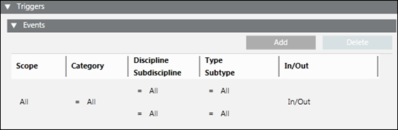 The Events expander under the Triggers expander displays as shown in the following image:
