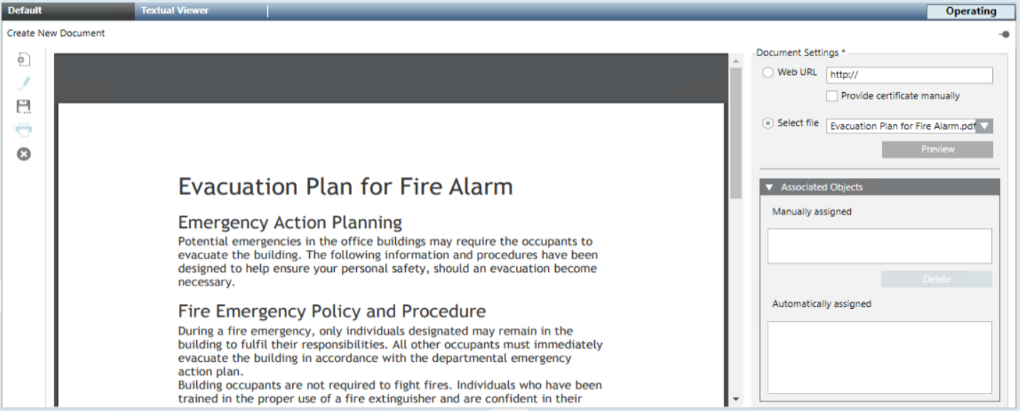 - You want to configure a read-only document in Desigo CC for the operator to consult or print. For background information, see Documents Workspace.