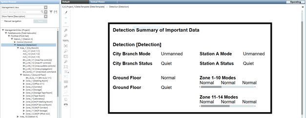 In this example, you want to click your Detection node in System Browser and have a graphic open in the Primary pane and display information from the objects below it. We will create the example below: