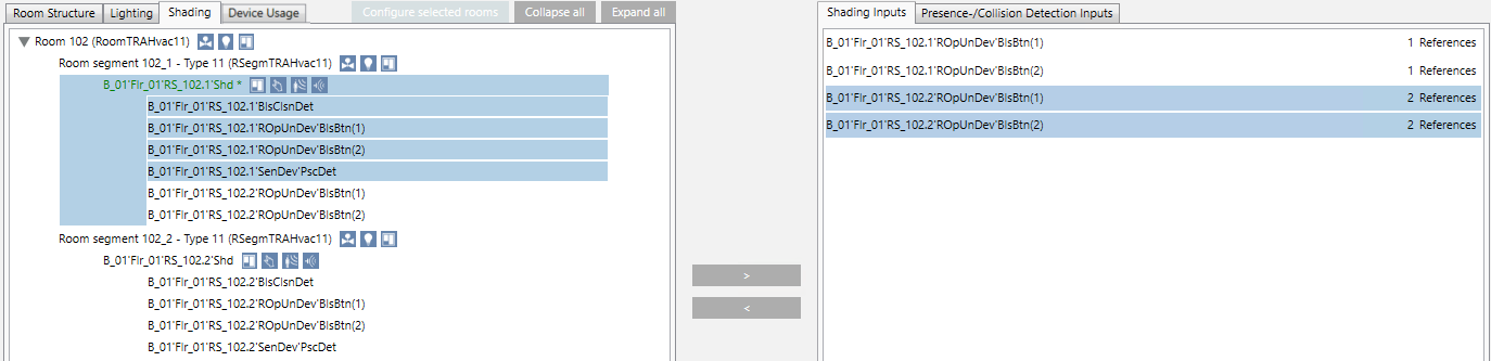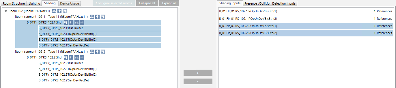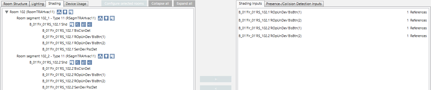 - Repeat steps 5 to 8 for the area RS_102.2’Shd. Assign inputs RS_101.2‘ROpUnDev‘BlsBtn(1) and RS_101.2‘ROpUnDev‘BlsBtn(2).