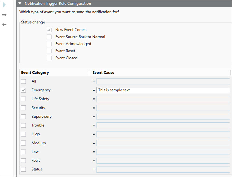 - Select the desired option from the Status change section. The default selection is New Event Comes.