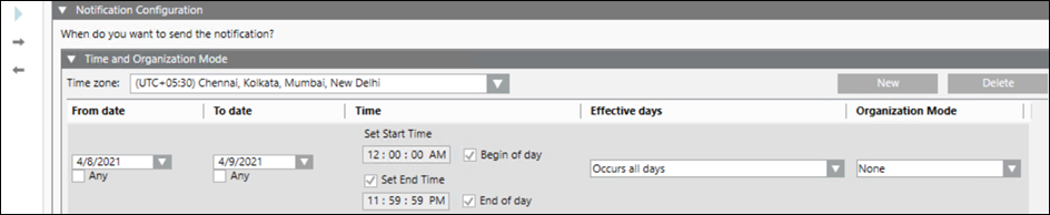 This topic describes the procedure to send notification triggered by event conditions in the Notification Wizard.