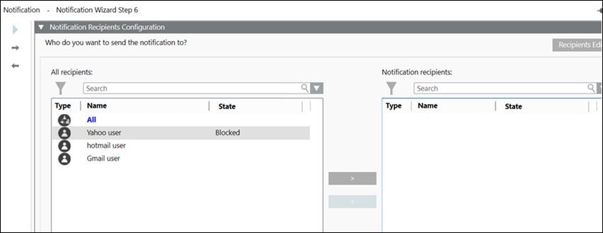 NOTE: You can configure new recipients using the Recipients Editor button. Refer to the Recipients topic for more information on adding recipients.