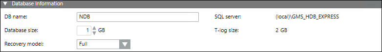 This expander allows you to select a SQL Server for hosting the database and filling in a detailed log.