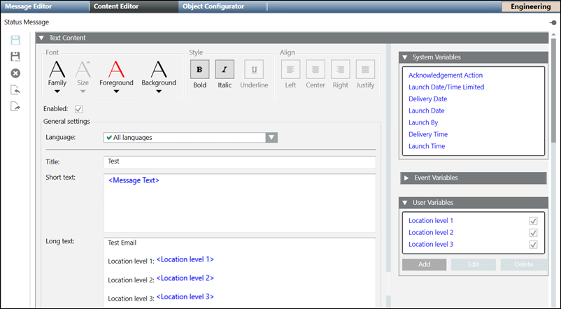 - Click the Message Content Editor tab and then open the Text Content expander.