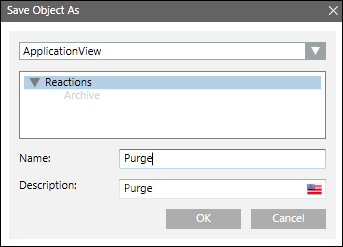 - Select Reactions and enter the name as Purge.