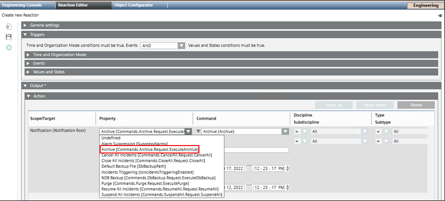 - From the Property drop-down list, select Archive [Commands.Archive.Request.ExecuteArchive].