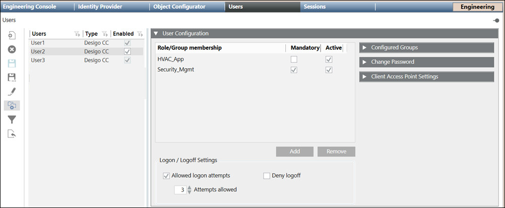 Role | ✘ | ✔ | Role is enabled and the user can view all the information as configured by the scope rights for this role. The user can disable the role from Flex Client. For example, User 2 is assigned two roles, HVAC_App and Security_Mgmt. When User 2 logs into Flex Client, all the information as configured by the scope rights for these two roles displays. The HVAC_App role also displays in the User Roles dialog box in Flex Client as it is non-mandatory and is enabled. |