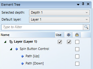 - Navigate to the Element Tree view, select the element that represents the DOWN spin button, and hold down the CTRL key and select the Spin Button Control and right-click.