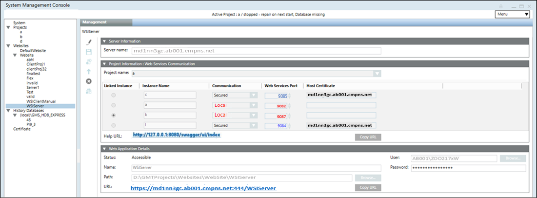 In the Project Information: Web Services Communication expander, from the Project name drop-down list, select a project to which you want to link the web services application.