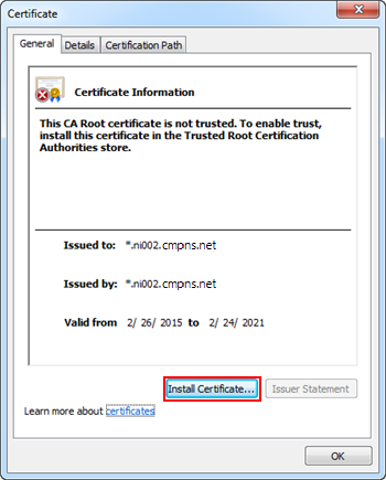 - In the Certificate dialog box, click Install Certificate.