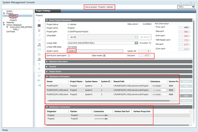 You cannot set up an outdated project in distribution, you must first upgrade it to the current software version. - The projects in distribution have a unique system name and system ID.