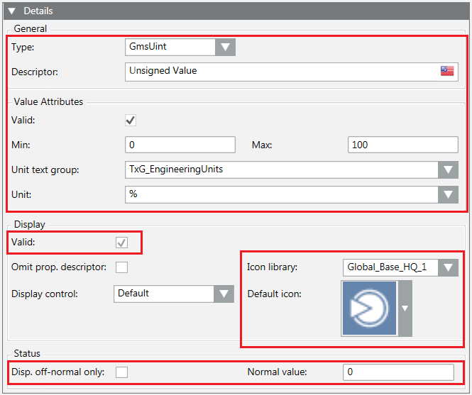 Attributes | Optional | Object containing the attributes of the property. For details, see Table GmsUint Attributes, below. The empty object (“Attributes”: { }) resets the attributes data. |
