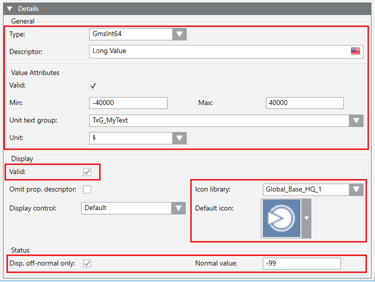 Attributes | Optional | Object containing the attributes of the property. For more details, see Table GmsInt64 Attributes, below. The empty object (“Attributes”: { }) resets the attributes data. |