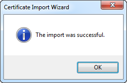 Click OK to close the Certificate dialog box after the successful import.