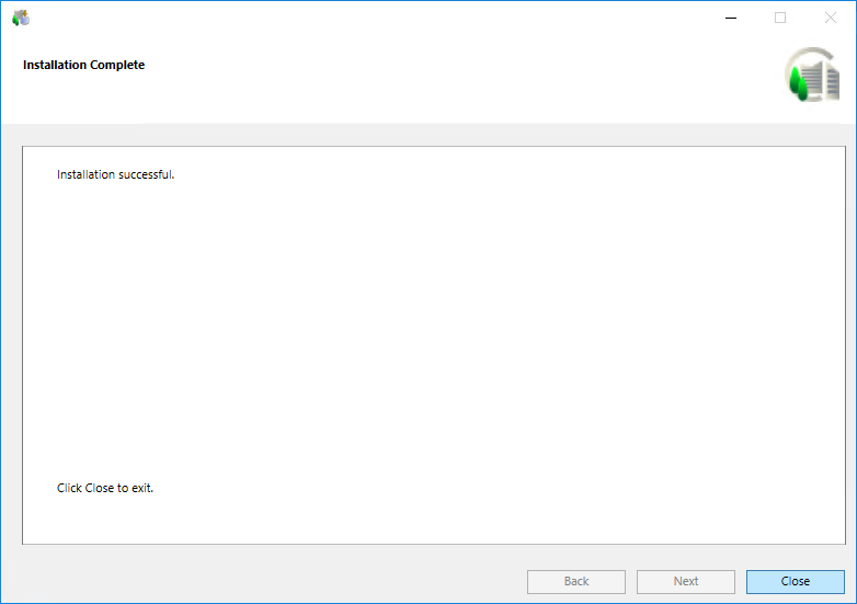 When the installation program is complete, the Installation Complete dialog box displays. Click Close to complete the installation. NOTE: In case of any installation errors, such as failure in installing the prerequisite/extension/language pack, click the View Log button to open the log file and view the details of the errors. (See Description of Installer Error Codes)
