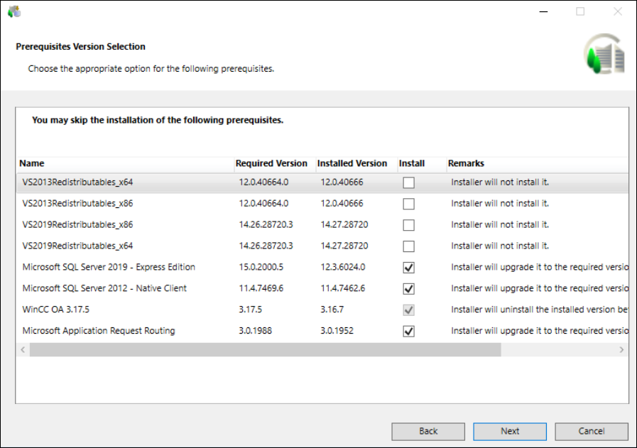 During the upgrade, the already installed mandatory prerequisite WinCC OA is upgraded to WinCC OA 3.19 by uninstalling the installed version and installing the required version.