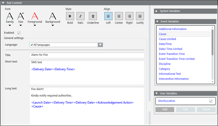 - The other fields (Language, Title, Short Text, and so on) are enabled.
