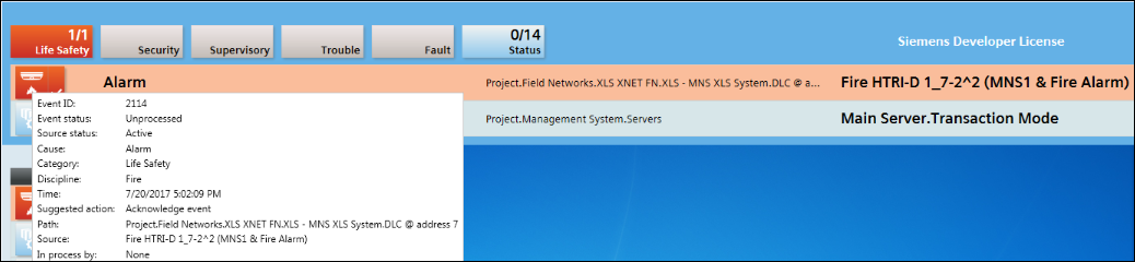 - When an event from the BACnet or Xnet interface is generated, the incident you created in step 4 (Incident_BACnet or Incident_Xnet) is initiated and can be verified from the Browse Incidents tab by selecting Applications > Notification > Browse Incidents.