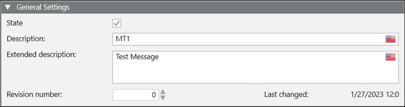 - General Settings: Configure the message description along with the message type and revision number.