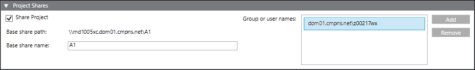 Share Project | When selected allows you to share the project folder for the selected project. It automatically sets the Base share name as the project name. |