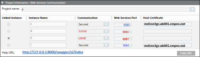 This expander allows you to select and link a WSI instance of a Server project to the web services application.