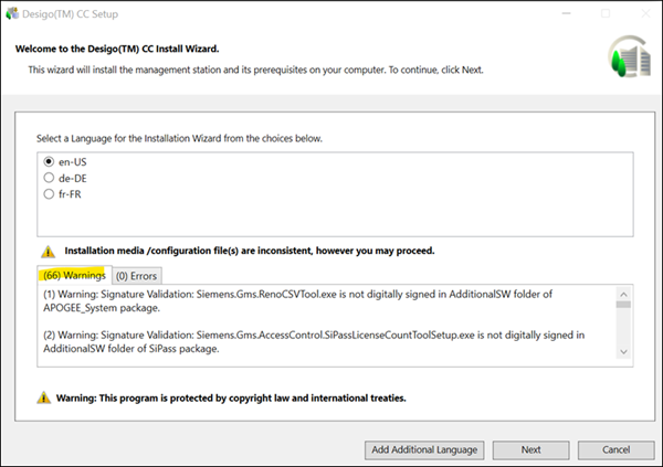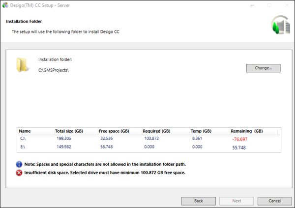 Before you perform fresh installation (custom, semi or silent) or upgrade Desigo CC, select shortest source or destination path for copying installation media.