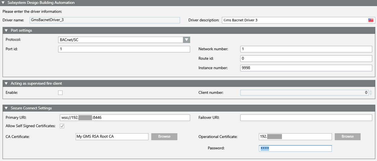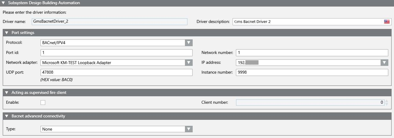 In the Subsystem Desigo Building Automation expander, enter a name in the Driver description field.